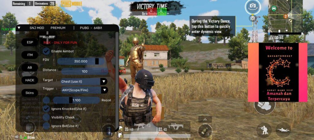 Menggunakan Cheat PUBG Mobile VIP anda tidak perlu Akun anda akan di Banned! Karena Cheat PUBGM sudah mempunyai Fitur Mega Bypass! Namun Perlu anda ketahui! Hindarilah Report dari Player Lain!